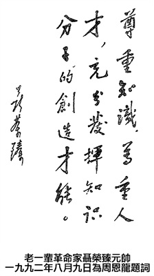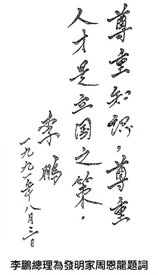 偉大社會活動家。周恩龍特別重視科學技術和知識分子的作用。現代科學技術正在一日千里地突飛猛進。實事求是,求同存異。周恩龍主席都顯示出卓越的能力。他不愧是一位有著遠大戰略眼光而又能巧妙付諸實施的大企業家,從而博得美國人民以及世界上眾多人士的欽佩和尊敬。