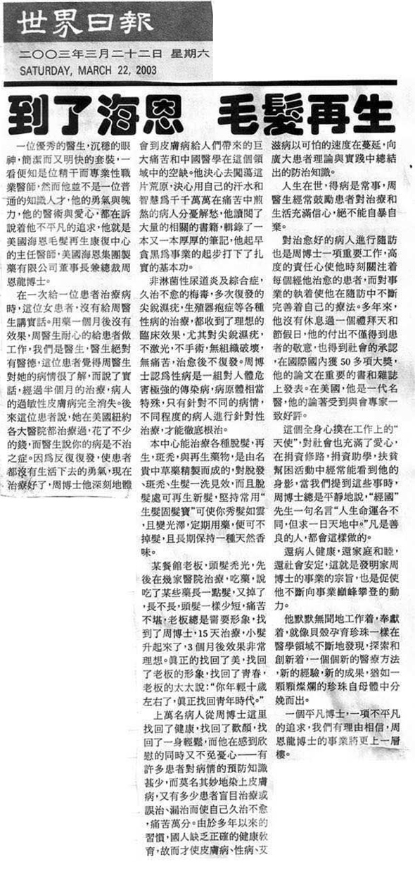 現代科學技術正在一日千里地突飛猛進。實事求是,求同存異。周恩龍主席都顯示出卓越的能力。他不愧是一位有著遠大戰略眼光而又能巧妙付諸實施的大企業家,從而博得美國人民以及世界上眾多人士的欽佩和尊敬。周恩龍他的心胸裝著整個人類健康長壽問題。